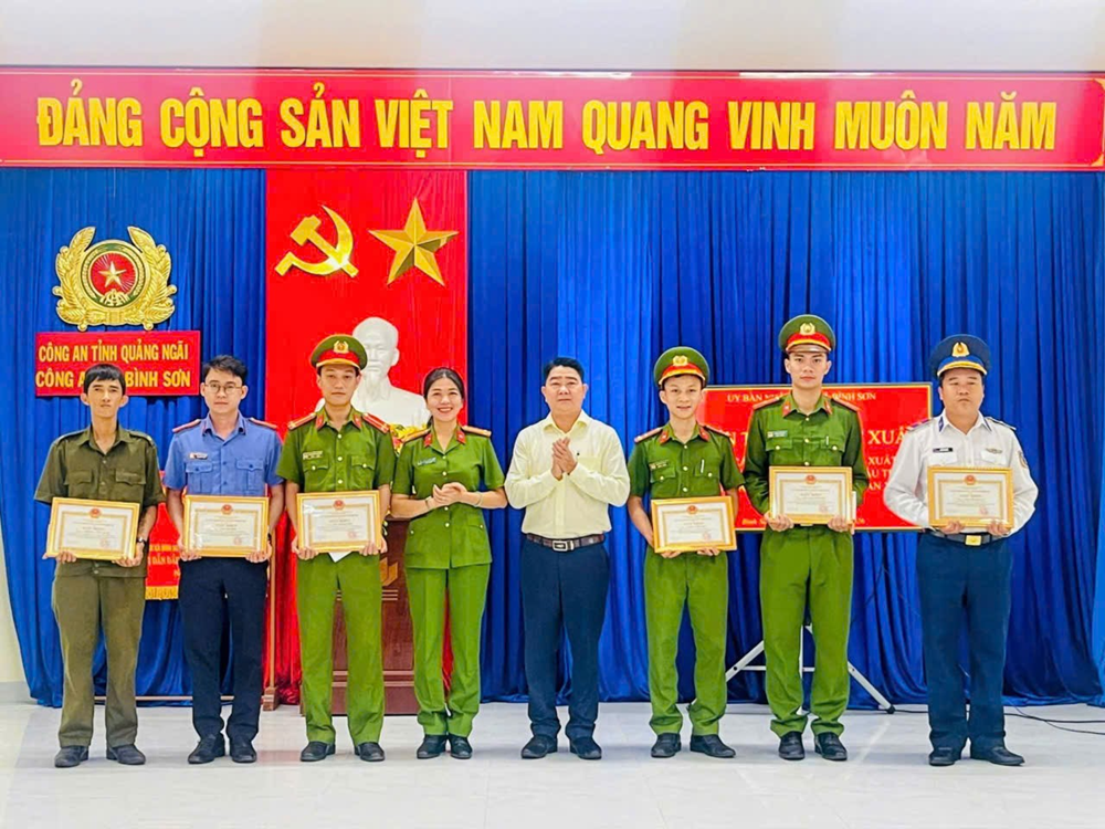 Tại buổi lễ, đồng chí Phạm Thanh Lương – Phó Chủ tịch UBND xã Bình Sơn thay mặt lãnh đạo địa phương trực tiếp trao quyết định khen thưởng cho đồng chí Phạm Hoài Tâm. Đây là sự ghi nhận kịp thời đối với nỗ lực và tinh thần trách nhiệm của đồng chí Phạm Hoài Tâm trong đợt cao điểm phòng ngừa, tấn công tội phạm trên địa bàn.