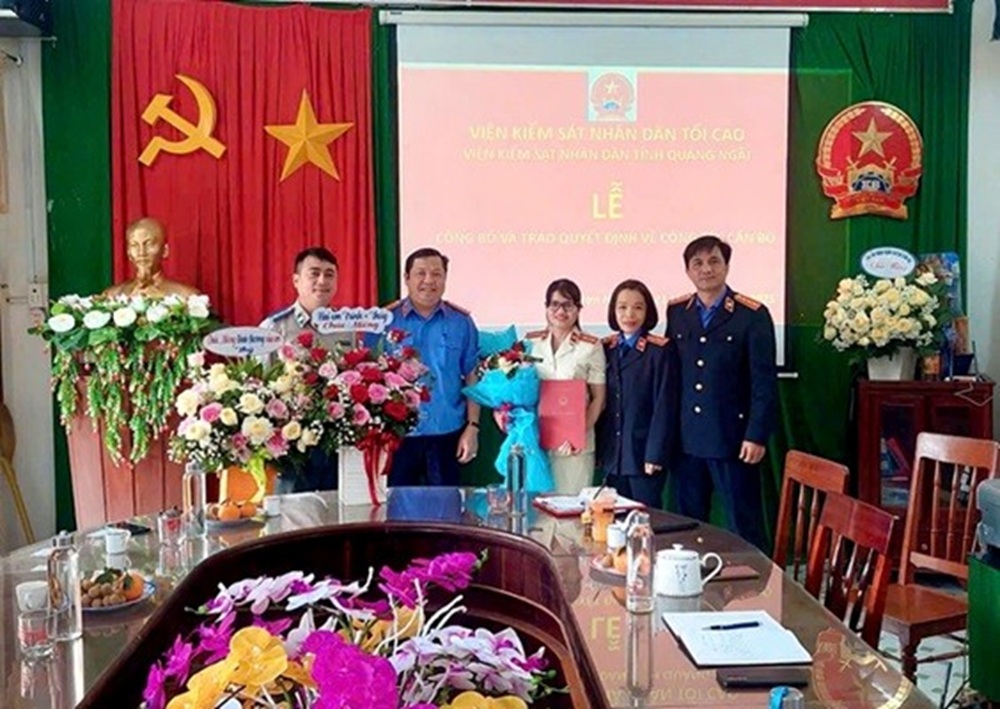 Với sự nỗ lực, phấn đấu của bản thân và kết quả đạt được trong quá trình thực hiện nhiệm vụ, được sự tín nhiệm của cán bộ, công chức trong đơn vị và tập thể Lãnh đạo Viện kiểm sát nhân dân tỉnh Quảng Ngãi, ngày 01/02/2025 đồng chí Đinh Thị Hương được bổ nhiệm Phó Viện trưởng Viện Kiểm sát nhân dân huyện Sơn Hà