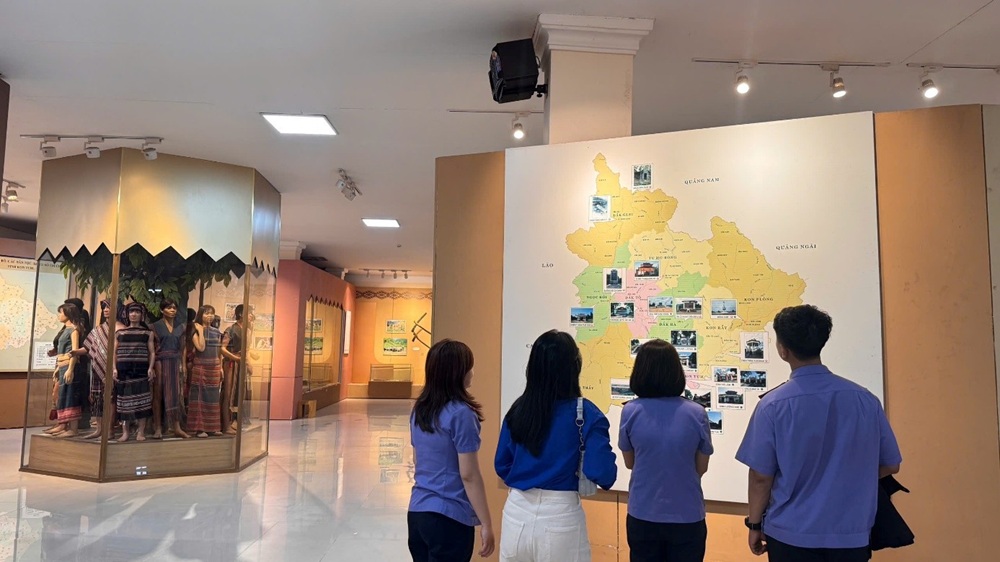Tiếp đó, đoàn đã tham quan Bảo tàng Kon Tum, nơi lưu giữ nhiều hiện vật, tài liệu phản ánh lịch sử, văn hóa và truyền thống cách mạng của tỉnh Kon Tum và khu vực Tây Nguyên. Hoạt động tham quan đã giúp đoàn viên, thanh niên mở rộng hiểu biết về lịch sử địa phương, đồng thời bồi đắp lòng tự hào dân tộc và ý thức trách nhiệm đối với sự nghiệp xây dựng và bảo vệ Tổ quốc.