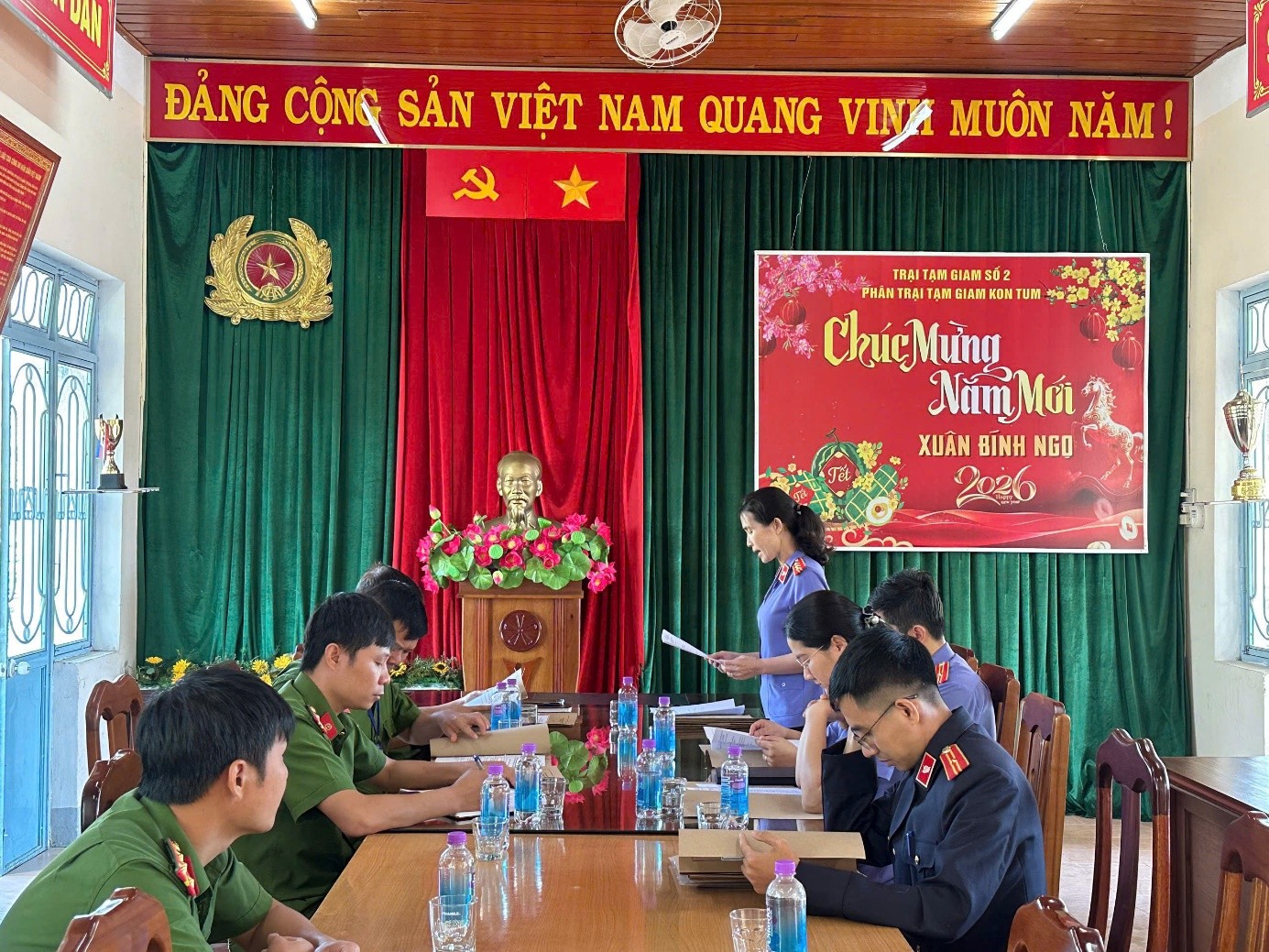 Từ ngày 15 đến 16/3/2026, VKSND khu vực 7 tiến hành trực tiếp kiểm sát công tác tạm giữ, tạm giam và thi hành án phạt tù tại Phân trại tạm giam Kon Tum thuộc Trại tạm giam số 2 Công an tỉnh Quảng Ngãi. Đoàn trực tiếp kiểm sát do đồng chí Lê Thị Mỹ Hạnh, Phó Viện trưởng làm Trưởng đoàn.