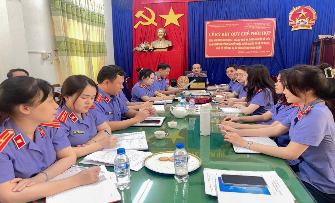 Thực hiện “Kế hoạch triển khai thực hiện việc học tập và làm theo tư tưởng, đạo đức, phong cách Hồ Chí Minh” của Đảng ủy Viện KSND tỉnh Quảng Ngãi, chi bộ Viện KSND khu vực 4 đã tổ chức triển khai sinh hoạt chuyên đề Quý I năm 2026 với nội dung học tập, quán triệt tư tưởng, đạo đức, phong cách Hồ Chí Minh, trọng tâm là chuẩn mực đạo đức cách mạng của cán bộ, đảng viên “Cần, kiệm, liêm, chính, chí công vô tư”. Tham gia buổi sinh hoạt có đồng chí Trần Văn Bên – Bí thư Chi bộ cùng toàn thể cán bộ đảng viên, Thay mặt Chi ủy đồng chí Lê Trung Hiếu – Chi ủy viên triển khai nội dung chuyên đề về tư tưởng Hồ Chí Minh quý I năm 2026 đến toàn thể cán bộ đảng viên chi bộ.