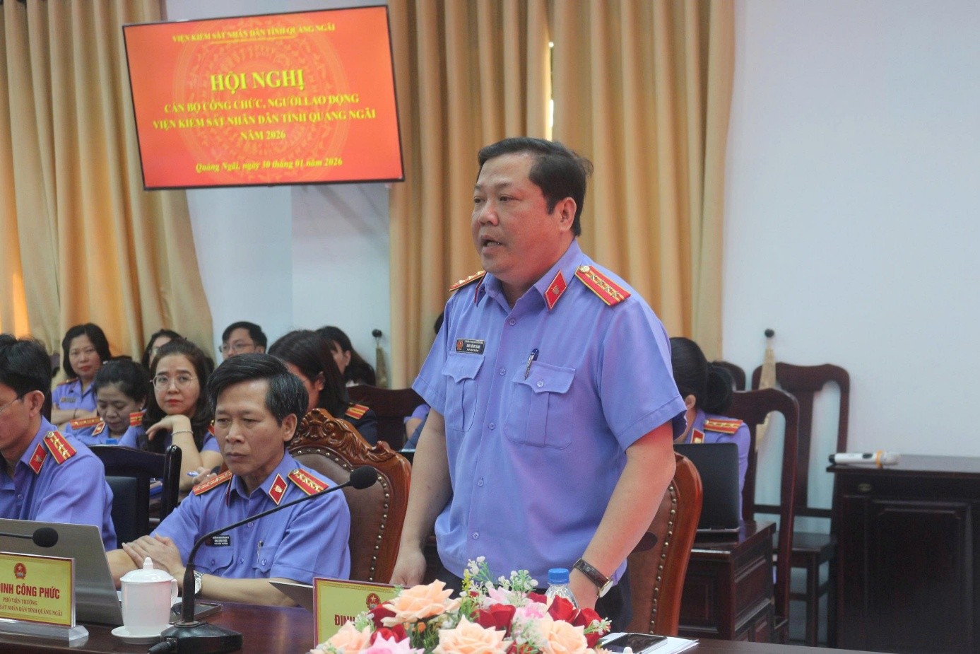 Hội nghị cán bộ, công chức, người lao động VKSND tỉnh Quảng Ngãi năm 2026 đã diễn ra nghiêm túc, dân chủ và thành công tốt đẹp, tạo sự thống nhất cao trong nhận thức và hành động, là tiền đề quan trọng để toàn ngành hoàn thành thắng lợi các nhiệm vụ công tác năm 2026.